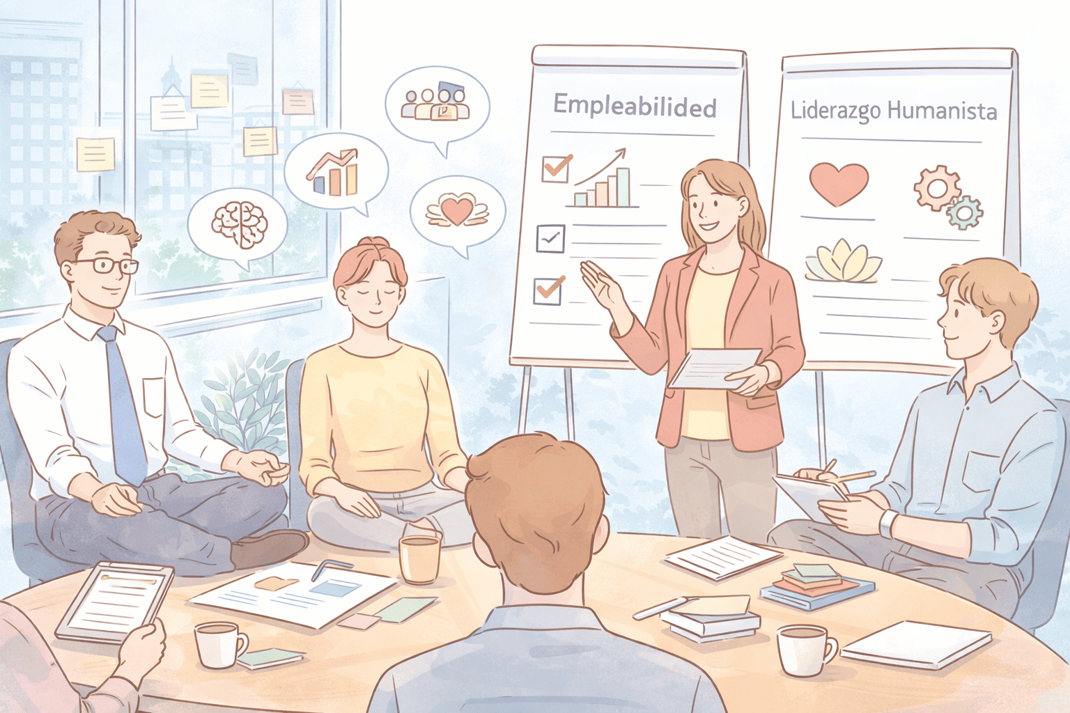 Diseño de programas para mandos intermedios y equipos, integrando bienestar, mindfulness y liderazgo consciente.